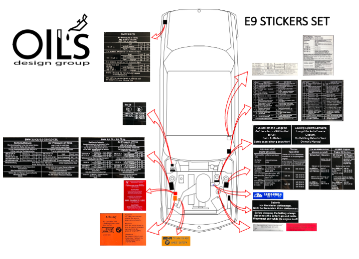 E9 2500 3.0 CSL – E3 2500 3.3LI – Stickers Set / Decals – 19 pieces
